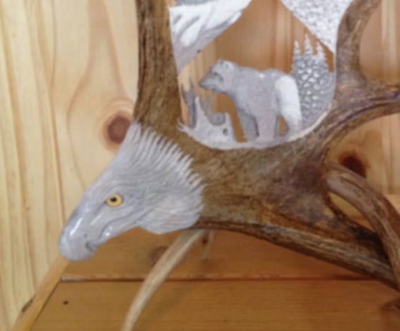 Antler Carving Moose Antler Carvings Eagle Carving Antler Art Etsy Uk