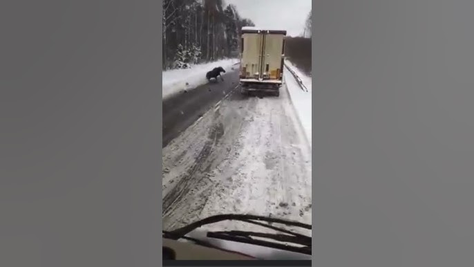Car Hits Large Moose Crossing The Road Disturbing Video
