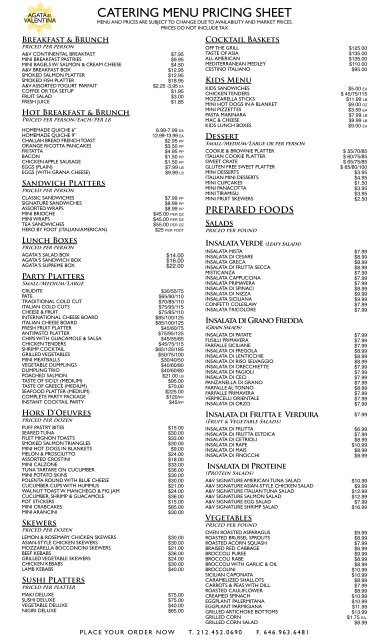 Catering Menu Pricing Sheet Agata Amp Valentina